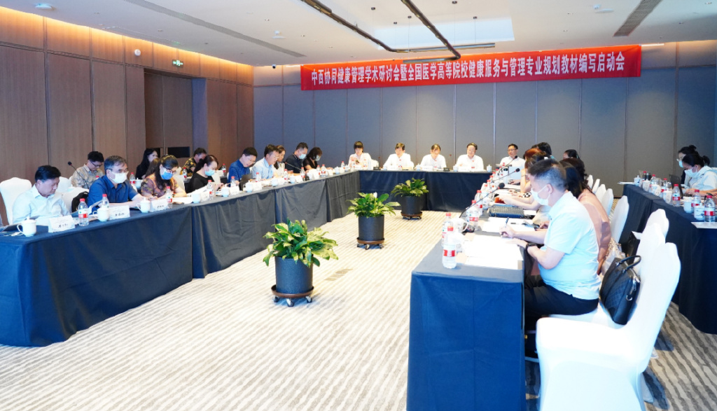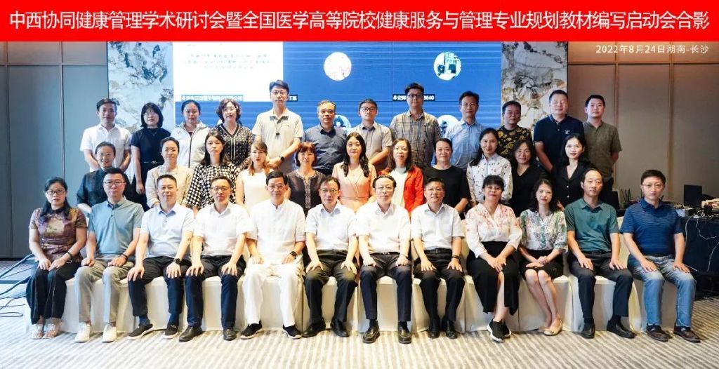 2022年8月24日,中西协同健康管理学术研讨会暨全国医学高等院校健康服务与管理专业规划教材编写启动会在长沙成功举办。来自全国健康服务与管理专业规划教材主编、院校教师以及大健康企事业单位从业者等代表齐集一堂共同探讨中西医协同发展思路,努力推进中西互补,协同发展。